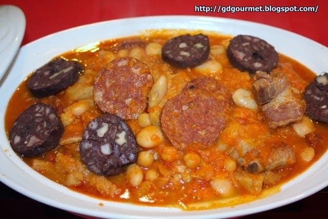 La verdad es que hay tantas formas de hacerlo como personas, la que yo me comí por ejemplo, aparte de lo comentado arriba, llevaba carne y chorizos. Estaba buenísima la verdad, me cargue como dos platos llenos y me quedé con ganas de mas.