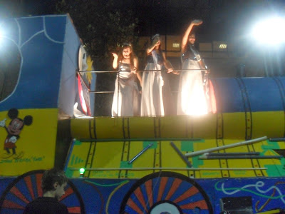 Bueno, estuve en el desfile y traté de traeros buenas fotos, por desgracia no me fue posible, algunas saqué así como vídeos, mas que nada para que os podáis hacer una idea de como es el tema, pero mi pequeña tuvo una de esas noches y mi cámara se le metió entre ceja y ceja, y cuando esto pasa, tienes dos opciones o te vas para la casa o guardas el aparatito para que la niña no juegue a... lo que sea con ella.